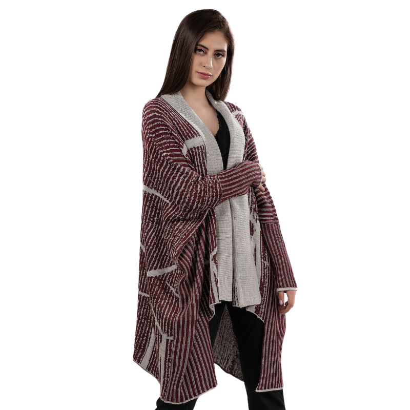 Una prenda contemporánea con inspiración en la energía natural. Sus motivos de aerogeneradores evocan movimiento y libertad, fusionados con la suavidad y abrigo de la baby alpaca.